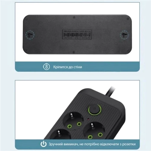 Кабель длиной 2 метра позволяет установить сетевой фильтр в любую удобную точку. Сетевой фильтр поддерживает мощность 2500 Вт.