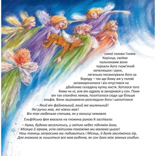Разом із героєм цієї історії Гномом Корінцем ми вирушаємо в чудову подорож, у світ, де живуть невидимі людському оку істоти. А починається все з осіннього листочка, що тихо падає вниз, зі знайомства з мудрим Духом Дерева, який знає таємниці природи.