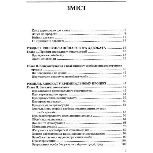 Пропонована праця містить методичні рекомендації для адвокатів, які беруть участь у кримінальній справі в якості захисника. Рекомендації грунтуються на аналізі основних норм нового КПК, роз'яснено окремі положення його застосування. Особливу увагу приділено ролі слідчого судді як одного з гарантів дотримання прав і свобод людини. На прикладі реальних справ досліджено особливості захисту щодо певних категорій справ, подано порівняльний аналіз роботи адвоката за нормами КПК 1960 року та чинного КПК. Запропоновано тактичні прийоми професійного захисту від кримінального переслідування та неправомірних дій слідчого, прокурора.