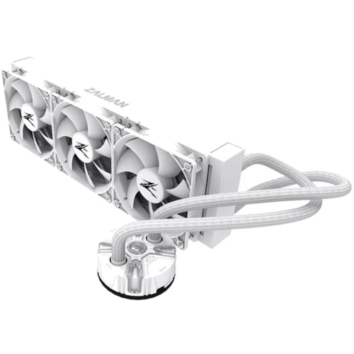 Zalman Reserator – серия продукции премиум класса. Трех секционная система жидкостного охлаждения для процессора Zalman Reserator 5 Z36 – собственная уникальная разработка Zalman. Большинство подобных устройств изготовлено по лицензии сторонней компании, которая специализируется на продукции такого типа. Один из запатентованных элементов конструкции – помпа с двумя крыльчатками, с более высокой производительностью при той же скорости, по сравнению с обычными стандартными помпами. Предусмотрена регулировка скорости при помощи сигнала ШИМ, который поступает на четырех контактный разъем в диапазоне 1000-2100 об/мин. ARGB подсветка сегментов помпы дополняет дизайн устройства и в сочетании с белым покрытием выглядит стильно. На радиаторе установлено 3х120мм тихих вентилятора (ZM-SF120), оснащённых подшипником скольжения EBR, с заявленными 50 000 часами бесперебойной работы в активном режиме. Скорость вращения регулируется при помощи широтно-импульсной модуляции в диапазоне от 800 до 2000 об/мин.