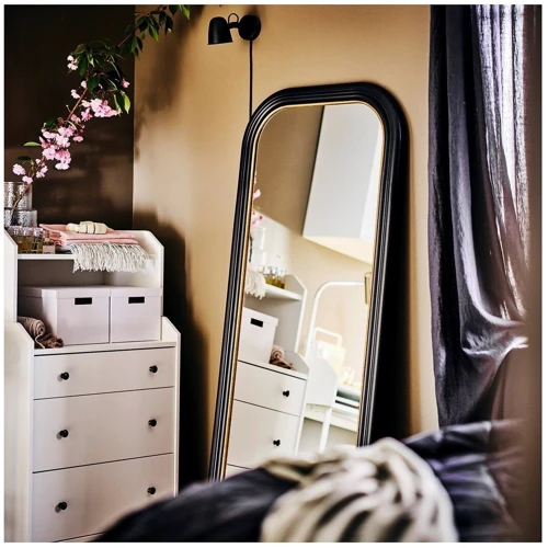 Вы можете повесить зеркало на стену или поставить его на пол и просто прикрепить к стене, чтобы убедиться, что оно надежно стоит на месте.