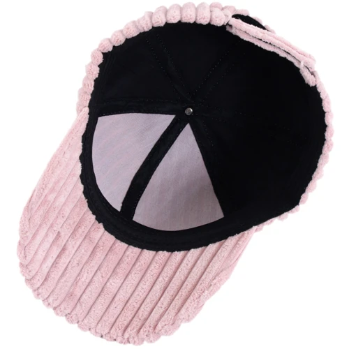 Вельветовая бейсболка розового цвета с меховым помпоном (отстегивается).