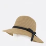 Соломенная шляпа с кружевным плетением по краям полей, с бантом из тонкой бечевки.