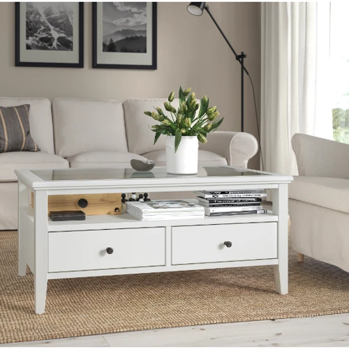 Серия IDANÄS сочетает в себе вневременной дизайн и современную функциональность. Этот журнальный столик со стеклянной столешницей и деревянной рамой придаст элегантность вашему дому. В нем также есть два выдвижных ящика для хранения секретов.
