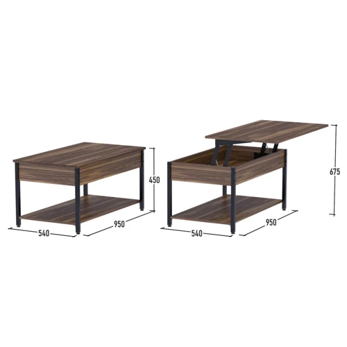 Журнальный столик L-5 slider изготовлен из ламинированного ДСП с красивой расцветкой, имитирующей текстуру дерева дорогих пород, и металлической холоднокатанной трубы. Надёжный подъёмный механизм фиксирует столешницу в поднятом состоянии. Он работает плавно и бесшумно.
