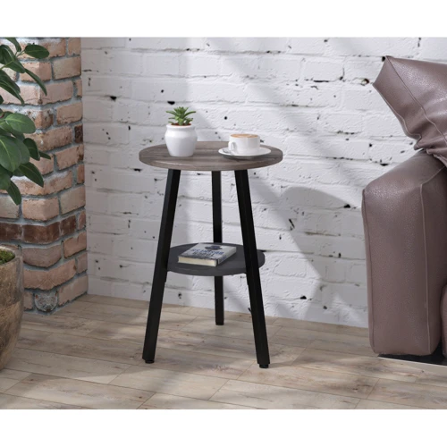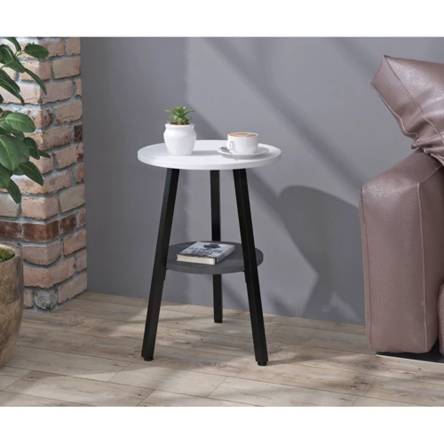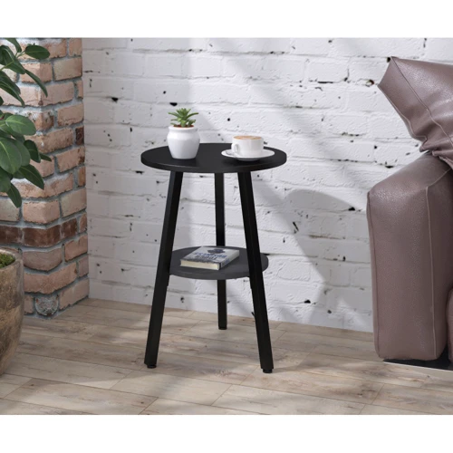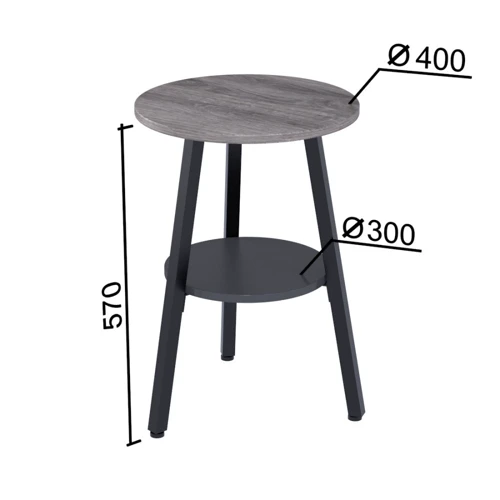 Столик изготовлен из трех металлических опор, столешницы и нижней полки.